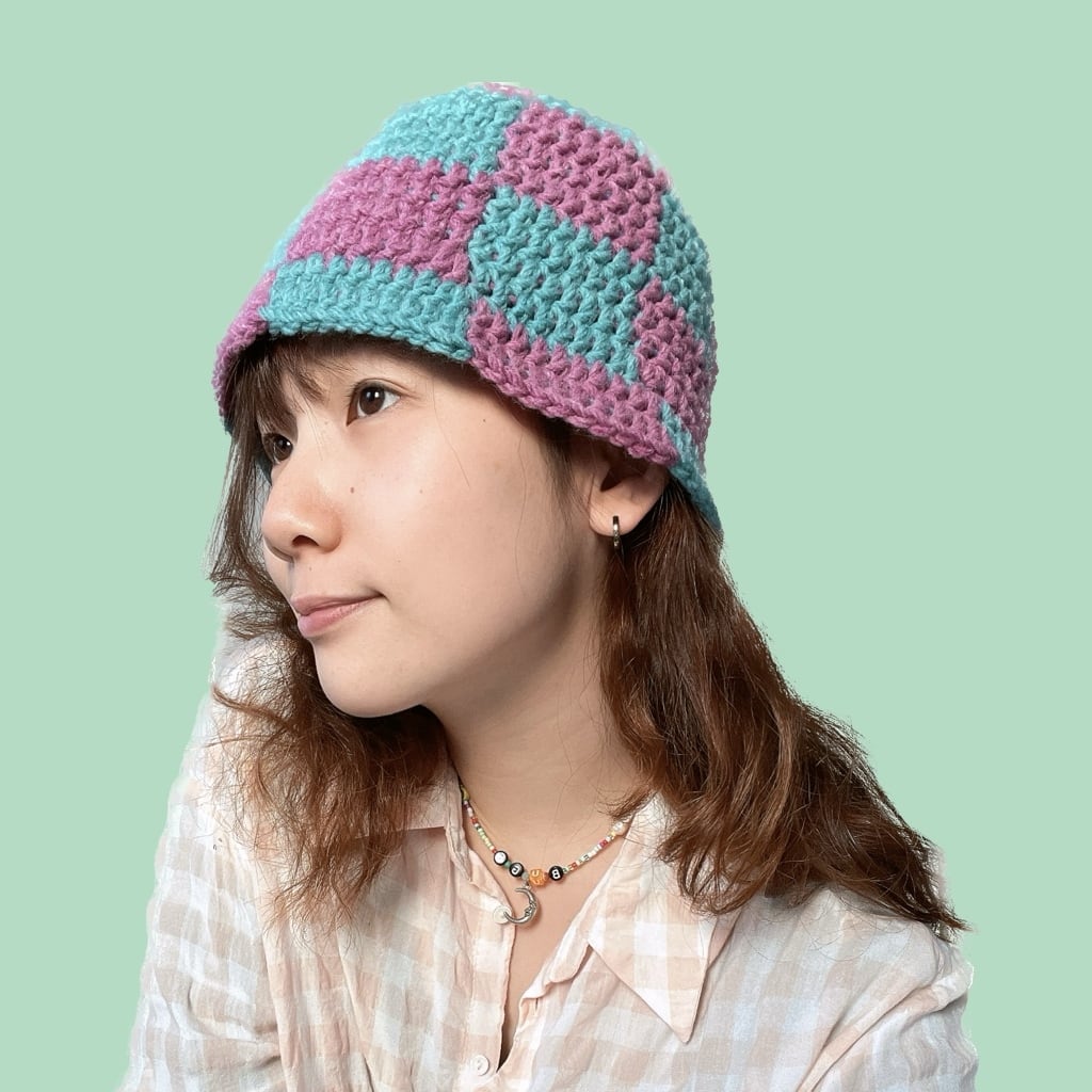 カラフルな市松模様の帽子があったらいいなぁ、、と思って編みました!